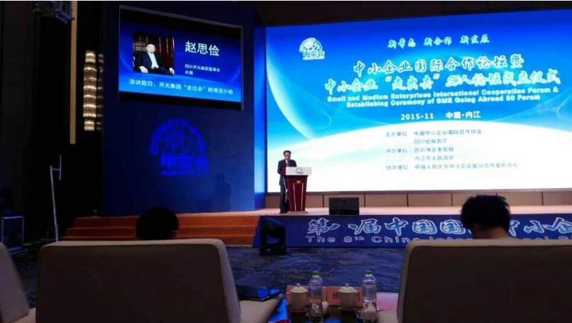 在“大众创业、万众创新”的背景下,中小企业发展既面临着重重困难,又将迎来前所未有的机遇和挑战,为给省内中小企业提供更多转型升级以及应对实事变幻的交流平台和契机,11月5日,由内江市政府主办的第八届中国国际中小企业交易会顺利召开。在“中小企业50人论坛”成立启动仪式上,集团董事长代表“走出去”企业发表重要讲话。