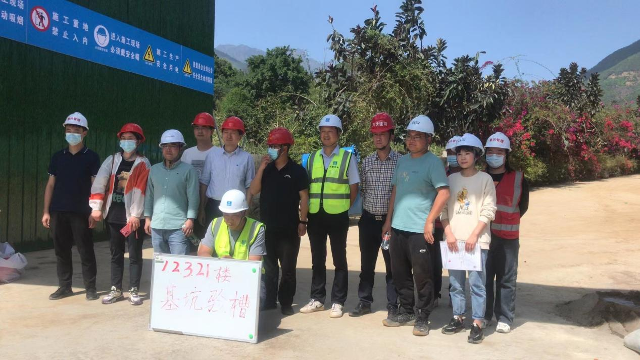 下午15时30分,德昌县住建局质安站、德昌凤栖和谷工程部、中建集团海花沟项目部、监理单位、地勘单位和设计单位负责人齐聚海花沟项目一期建设现场,正式开展一期项目基坑验槽工作。