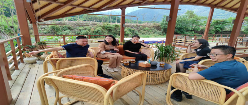 参观样板房后,李总邀请客人到涧茶台小憩,大家一边品茗,一边畅谈了本次参观的感受,同时在听取营销置业顾问的深入介绍后,客人一行表达了浓厚的置业意向。