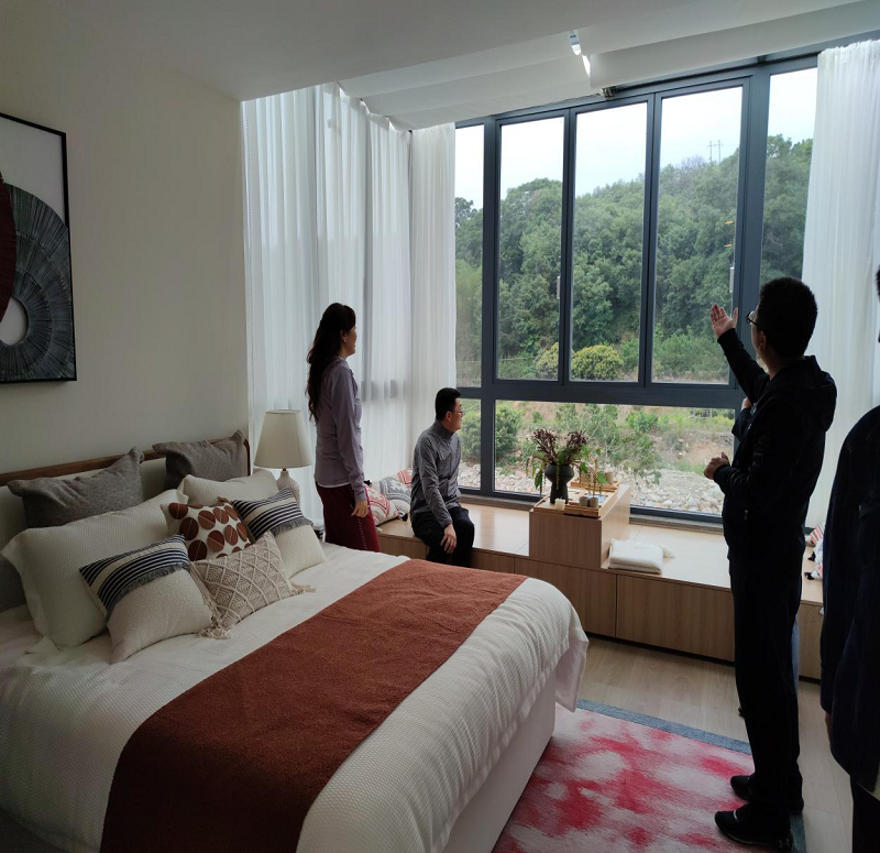 林主席一行饶有兴致地参观样板房,并仔细了解房屋设计、布局等情况。