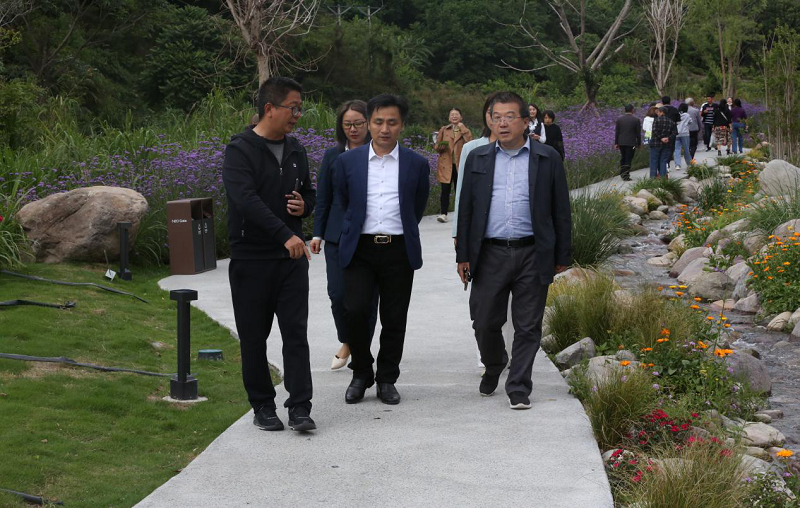 在大地公园景观步道,大家一路前行,欣赏盛开的百花,感受和煦的春风,与公园美景合影留念。李总向客人们详细介绍了项目景观的设计理念,花卉苗木的种类和特点等情况。