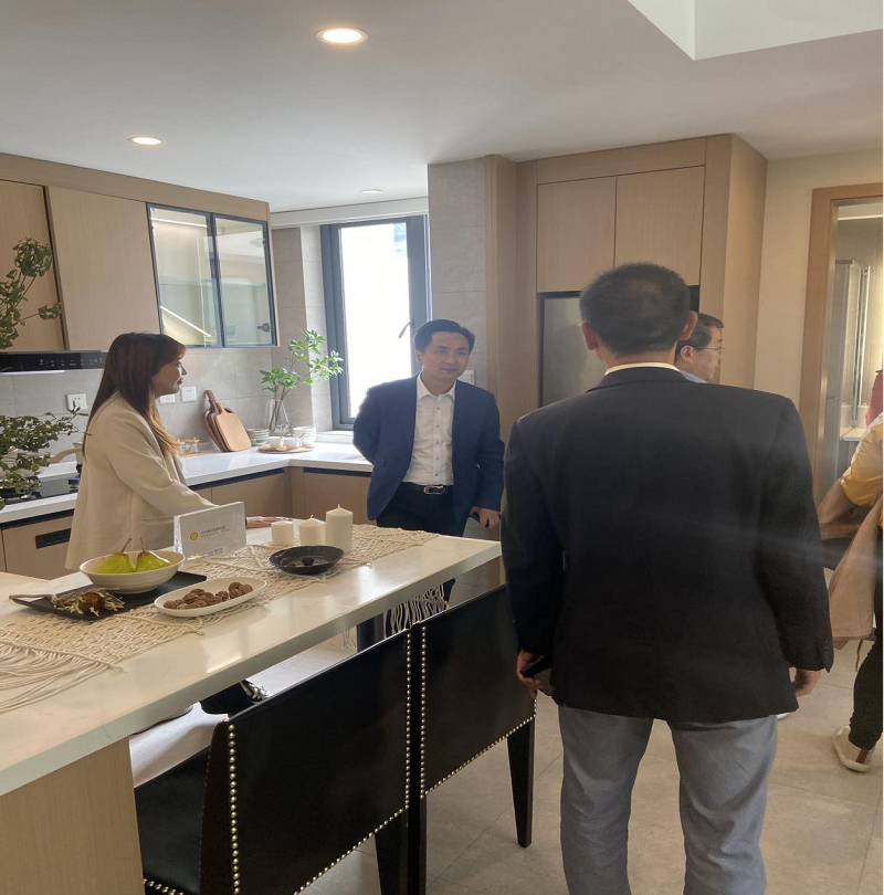 随后,营销工作人员陪同客人们前往样板房实地考察。在对户型、朝向、采光和环境等方面进行细致咨询和了解后,苗主席当即决定在此置业,并选择了心仪的居所。他表示,通过这两天的考察,海花沟山青水秀景美,是不可多得的宜居之地,非常憧憬在此的自然生活。