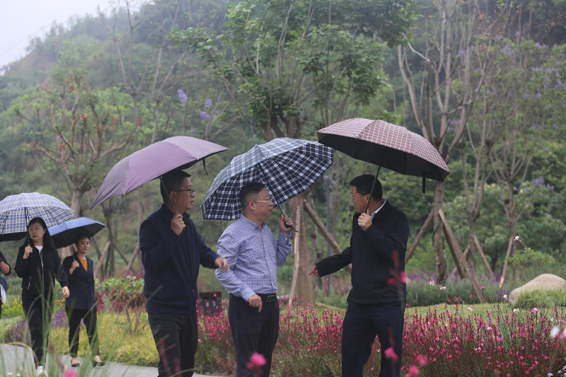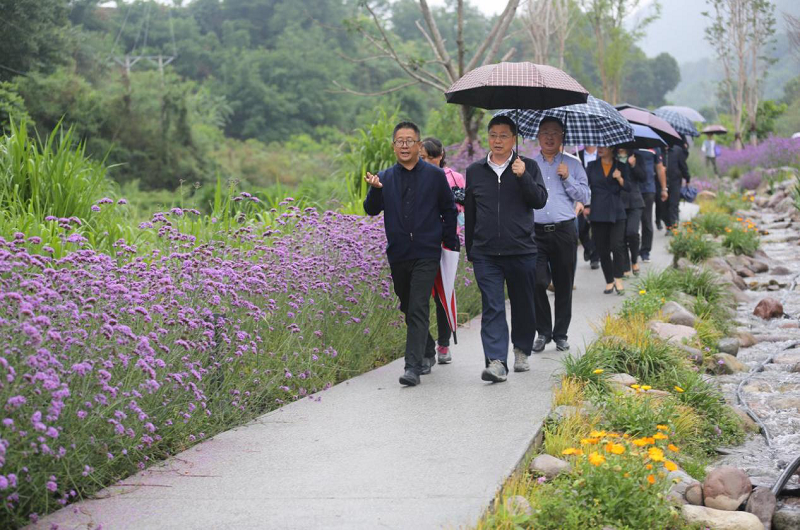 李总首先陪同考察团参观溪地公园,并具体介绍了溪流景观、花卉园林景观的设计理念和实景打造情况。环书记对公园呈现的自然风貌和美丽风景给予了高度评价。