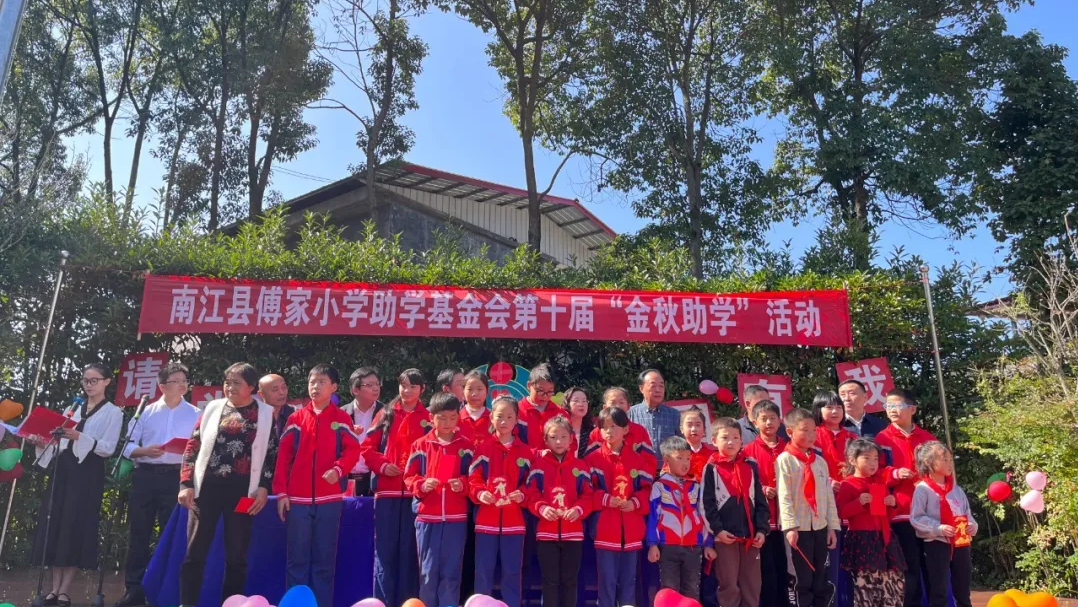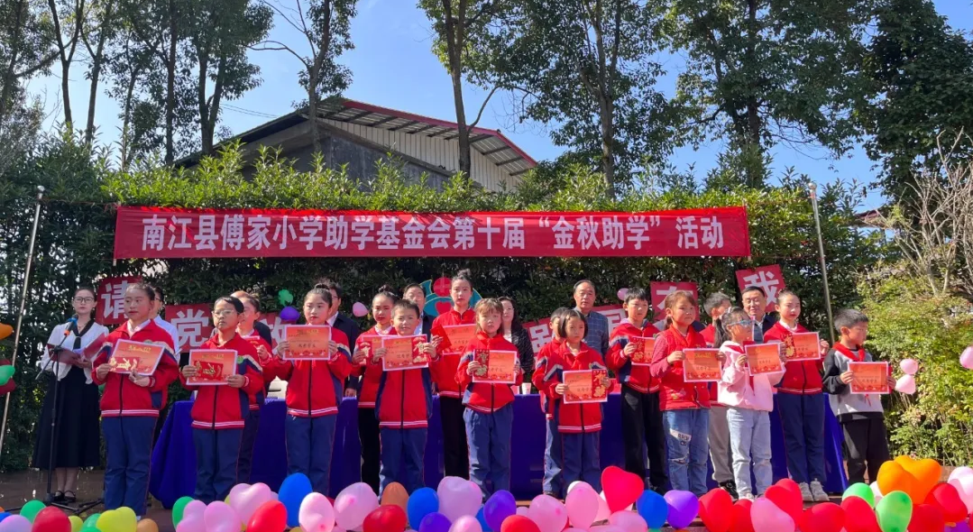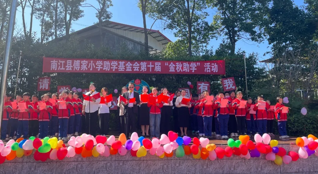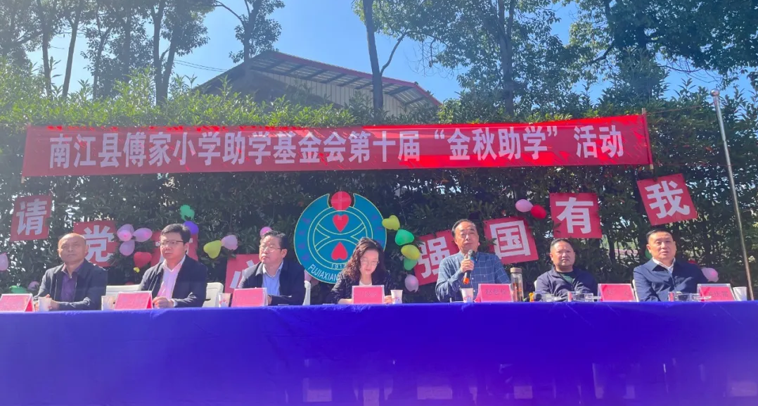 10月23日,南江傅家小学基金会第十届“金秋助学”活动举行。南江县委常委、宣传部部长吴城蓉,南江县教科体局党组书记、局长陈小军等领导参加活动。巴商总会会长、傅家小学助学基金会理事长、集团董事长赵思俭等爱心人士共30余人参加活动。